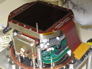 On the left is the engineering grade CCD device being installed in the Acam cryostat.
