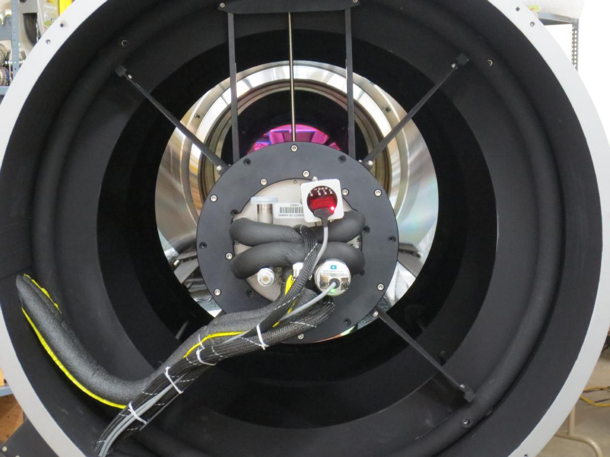 A view down the throat of the DFM telescope with the ATLAS camera mounted on the spider ring